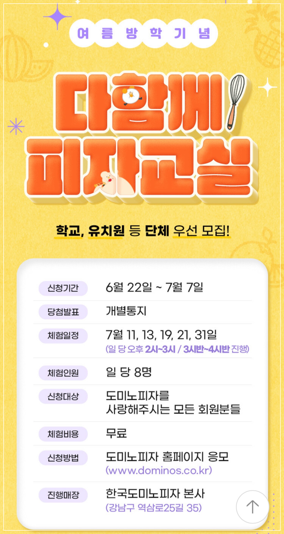 한국도미노피자 본사에서 진행되는 피자교실 이벤트는,