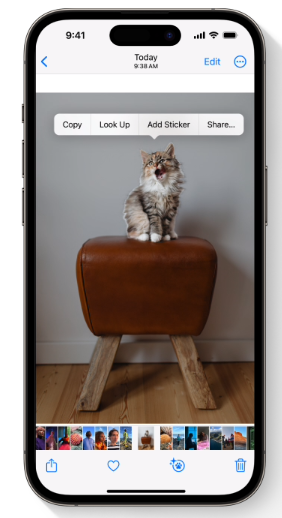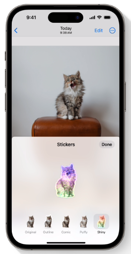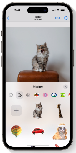 사진에서 대상만 분리해 만들 수 있는 라이브 스티커와, 라이브 스티커에 효과를 적용하거나, 키보드 보관함을 통해 스티커를 보관할 수 있음