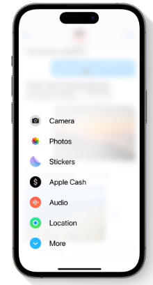아이메시지 메뉴추가 : 메뉴(+)버튼을 통해 사진, 오디오메시지, 위치 등의 정보를 공유함