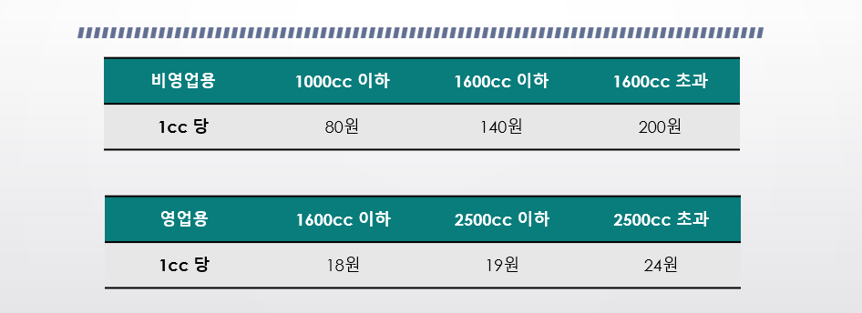 배기량을 중심으로 자동차세를 산정하고 있습니다.