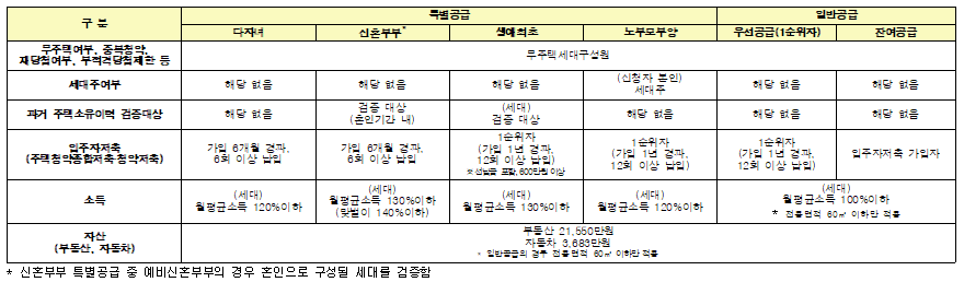 공통사항은 무주택세대구성원 / 부동산 및 자동차 자산 이겠네요.