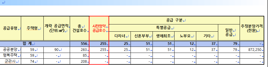 동작구 수방사의 경우 전용 59제곱 총 263호 중 사전청약으로 255호를 공급합니다.