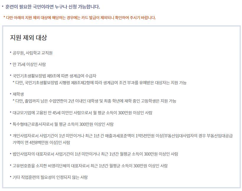 - 취업, 이직, 역량 개발에 필요한 훈련을 지원하기 위한 제도