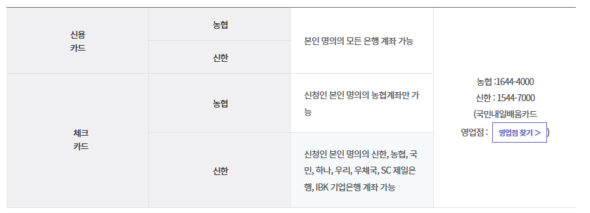 내일배움카드는 신한은행과 NH은행 카드로 발급받을 수 있으며,