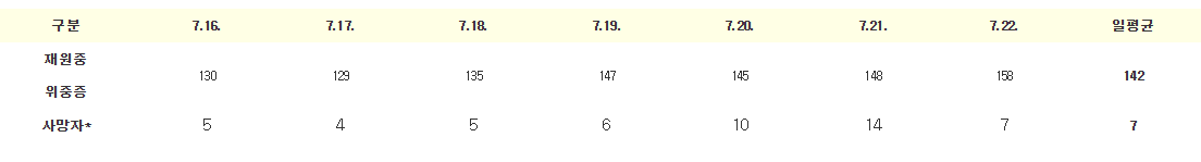 2023년 7월 현재, 위중증환자는 주간 평균 150명 이하, 사망자는 100명이하를 유지중이며,